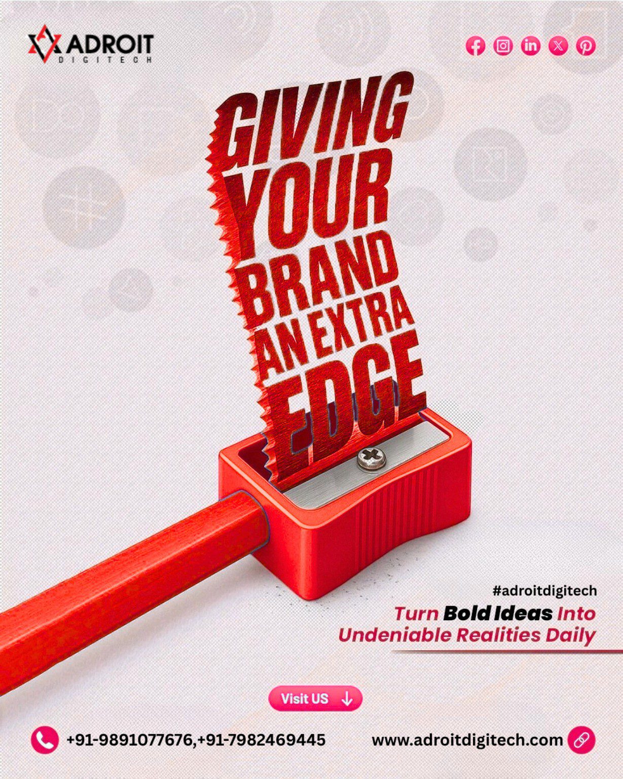 This is where Adroit Digitech steps in — sharpening your brand like the creative sharpener concept in the image — giving you clarity, visibility, and dominance.